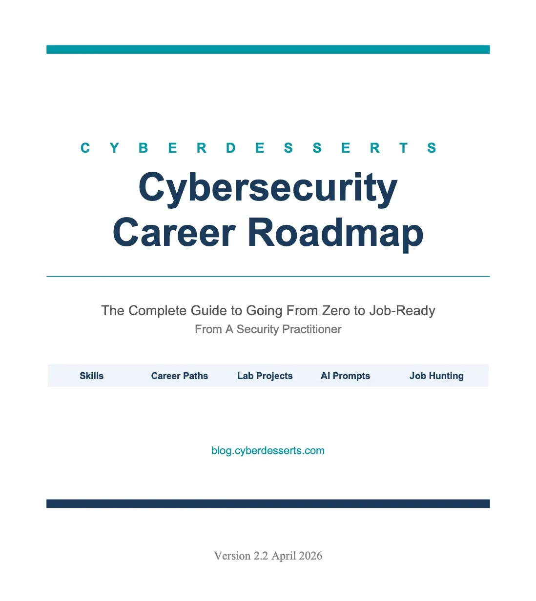 The New Cybersecurity Career Guide 2026 is 58 pages covering the AI effect on your career, four role tracks with certification strategy for Blue Team, Red Team, Cloud and GRC, a 2026 lab build guide, and a full section on the professional skills AI cannot replace. It is the guide I wish I had when I was building my career.